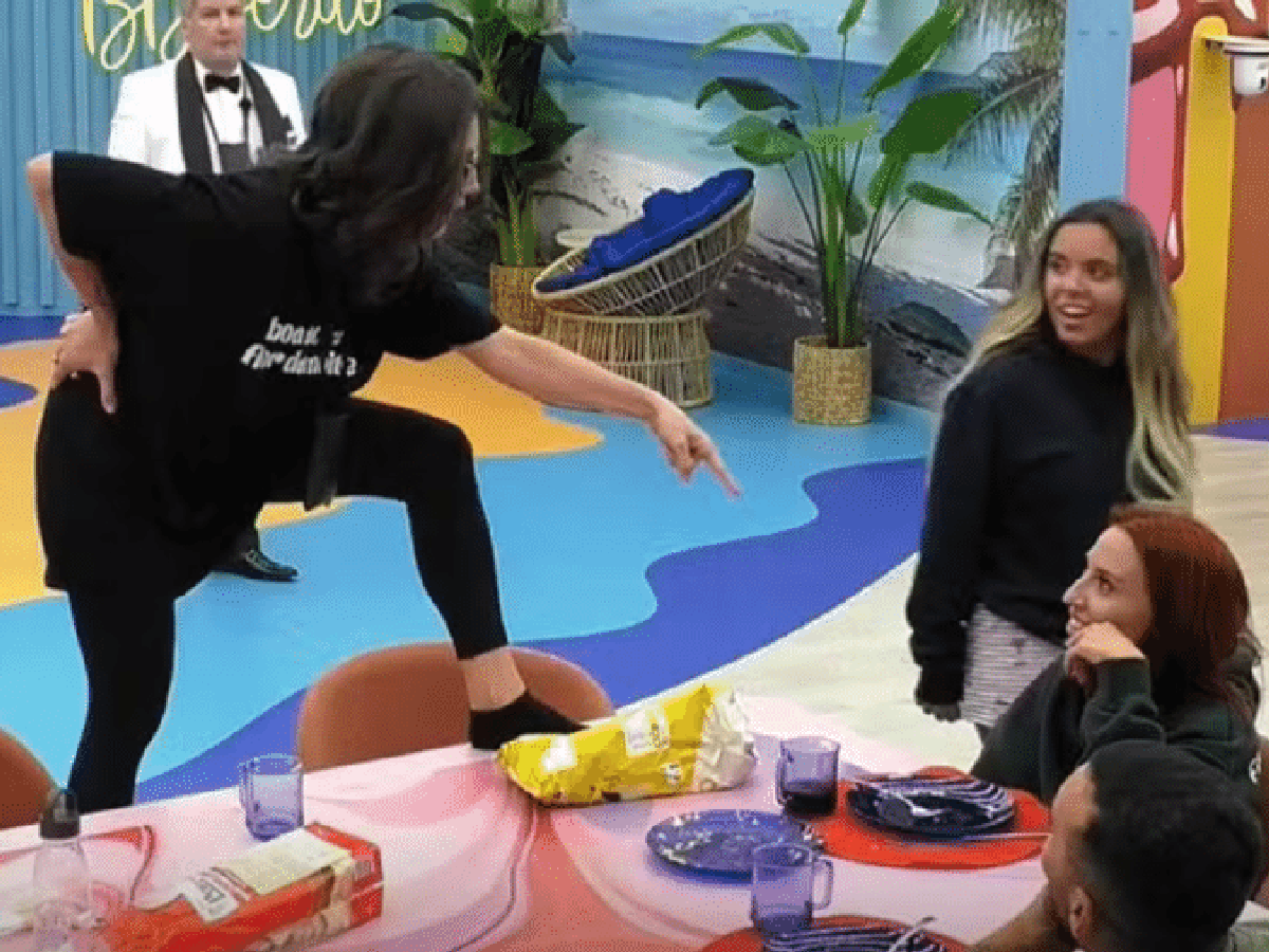 Irritada, a brasileira subiu na mesa e começou a bater o pé no móvel enquanto gritava: "Quero ouvir você falar no microfone mais alto. Repita, garota!" A outra participante do reality ficou visivelmente arrependida.