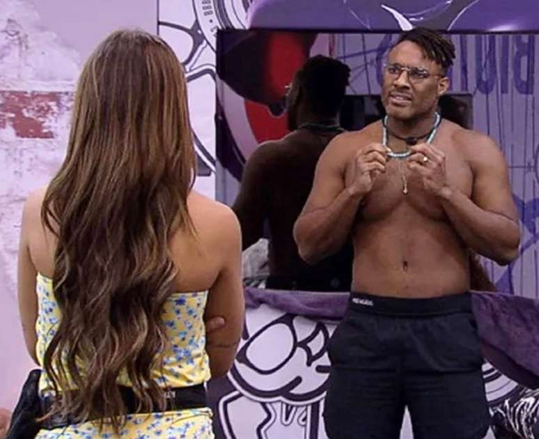 Ela rebateu: "Que tamanho você acha que tem de falar que vai vir processo? Eu não tenho medo de processo, meu amor". E insistiu que o assunto deveria ser falado apenas entre os dois, não no "BBB 23".