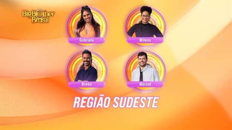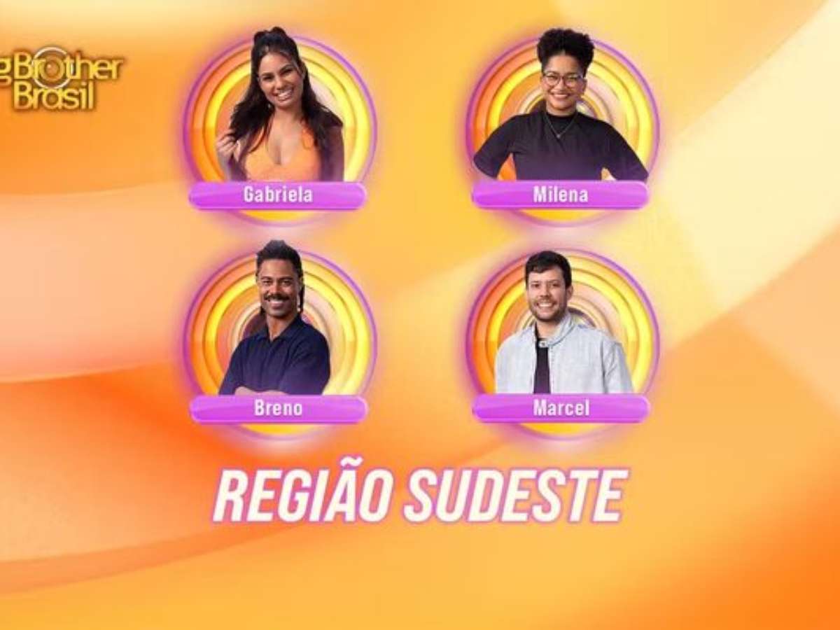 No Sudeste, a estudante de psicologia Gabriela, a recreadora de festa infantil Milena, o biólogo Breno e o advogado Marcel disputam a preferência do público. Veja o perfil de cada um dos participantes aqui.