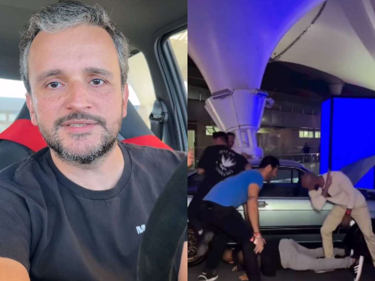 Tiago Kfouri fez um vídeo em que chama a atenção dos seis rapazes que tocaram e subiram em cima do veículo: 'Dá nojo de olhar pro meu carro'