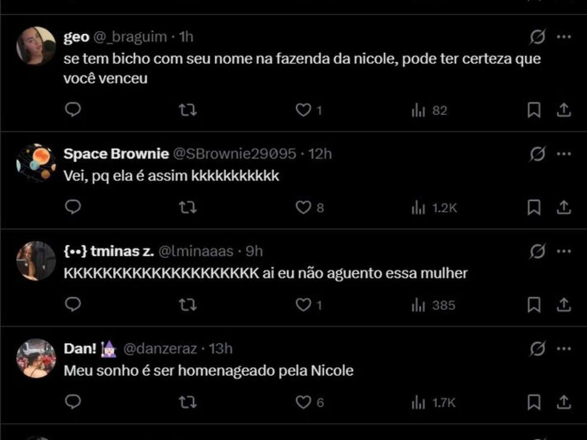 Nicole ainda lembrou que essa não é a primeira vez que escolhe nomes inspirados em artistas. Ela já tem um animal chamado Marina Sena, cantora que é namorada de Juliano Floss.