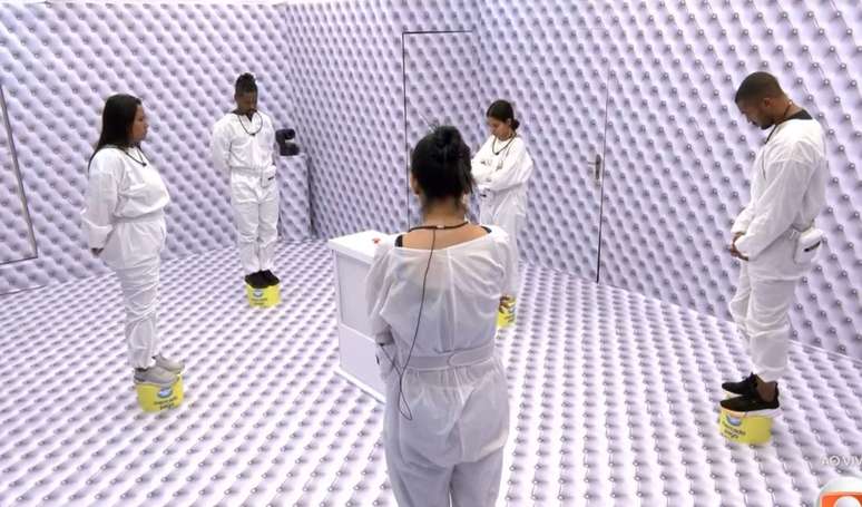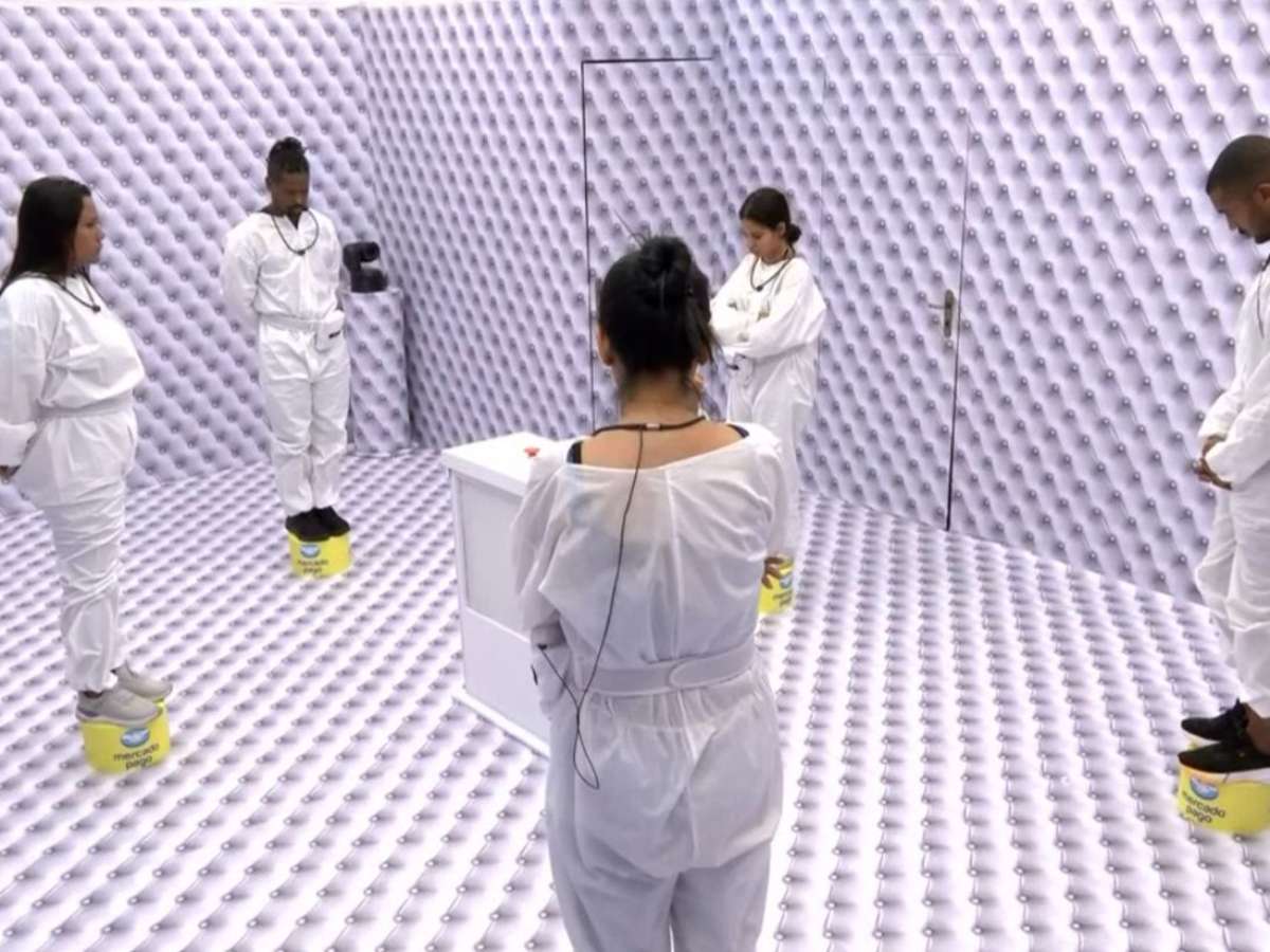 Durante a edição do 'BBB 26' deste sábado (17), dois Dummies invadiram o Quarto Branco e colocaram 5 mini plataformas redondas ao redor do botão central, onde, imediatamente, a voz do Big Boss ordenou que cada participante subisse em cima de uma delas.
