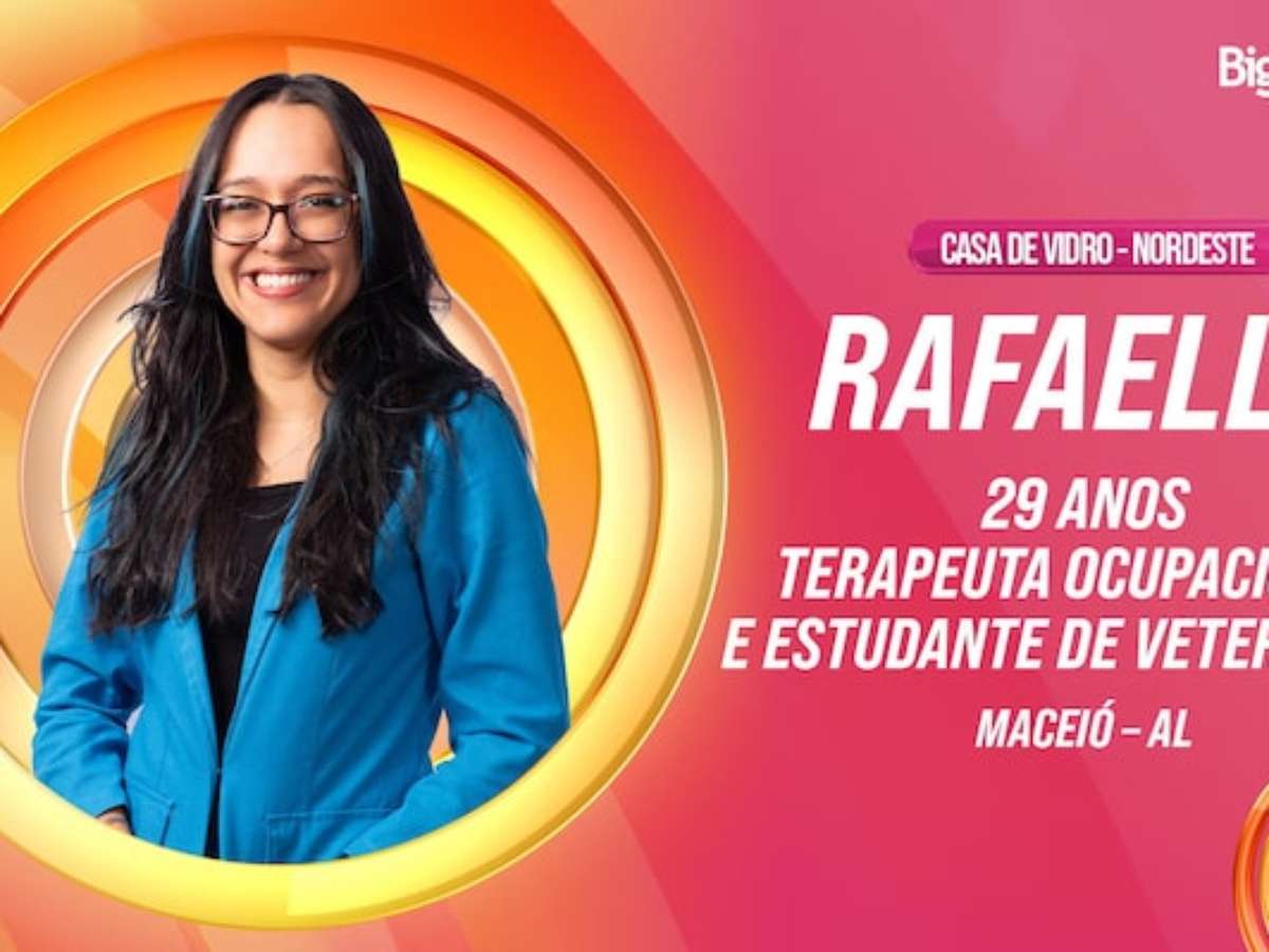 No intervalo da programação da Globo, Tadeu Schmidt deu mais detalhe sobre a mulher de 29 anos que disputa a vaga feminina da Casa de Vidro do Nordeteste com Maxiane Rodrigues. Rafaella nasceu e mora em Maceió, Alagoas.