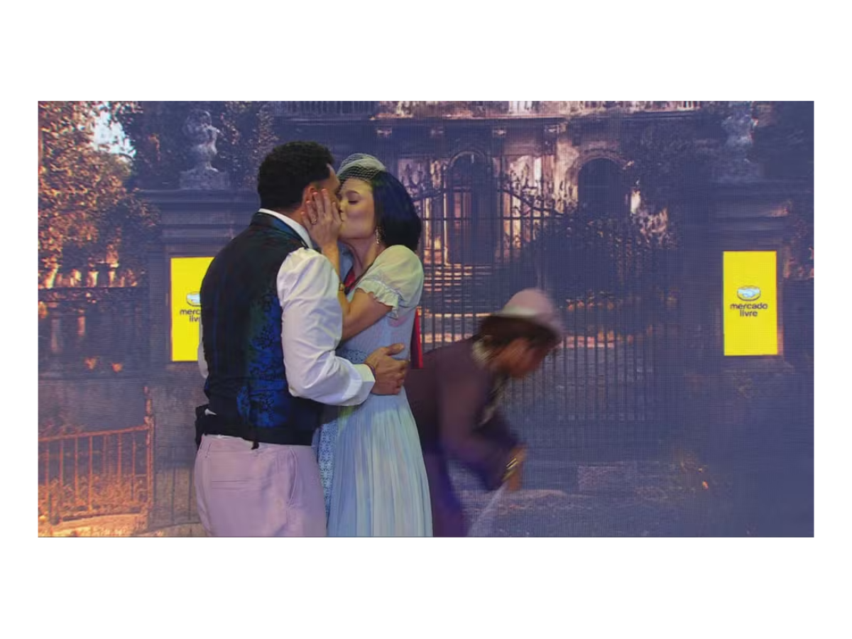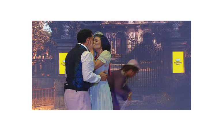 O momento que mais repercutiu foi justamente o desfecho da história encenada por Vitória e Vinícius. Com direito a declaração de amor, os personagens trocam palavras carinhosas antes de um selinho, selando a conclusão da narrativa montada para a festa.