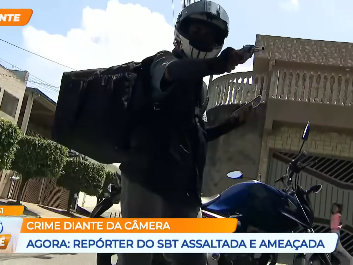 O cinegrafista também sofreu uma ameaça do criminoso, que o mandou abaixar a câmera. Após conseguir o celular e a senha do aparelho, ele saiu com a moto em alta velocidade.