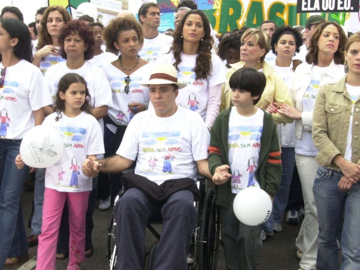 Na gravação realizada durante a passeata, os personagens choraram a morte de Fernanda e usaram camisetas desenhadas por Salete (Bruna Marquezine), filha da vítima e que só descobriu a identidade do pai biológico no último capítulo. "Ter arma em casa não leva a nada. É perigoso", falou Bruna, ao jornal "O Globo", então com 8 anos.