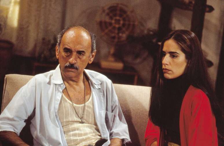 Sebastião Vasconcelos, intérprete de Floriano na novela global 'Mulheres de Areia', morreu na noite dessa segunda-feira (15), no Rio de Janeiro. Na foto, o ator aparece com Vilma (Denise Milfont) e Do Carmo (Lu Mendonça) em gravação do remake que foi ao ar em 1993, na TV Globo