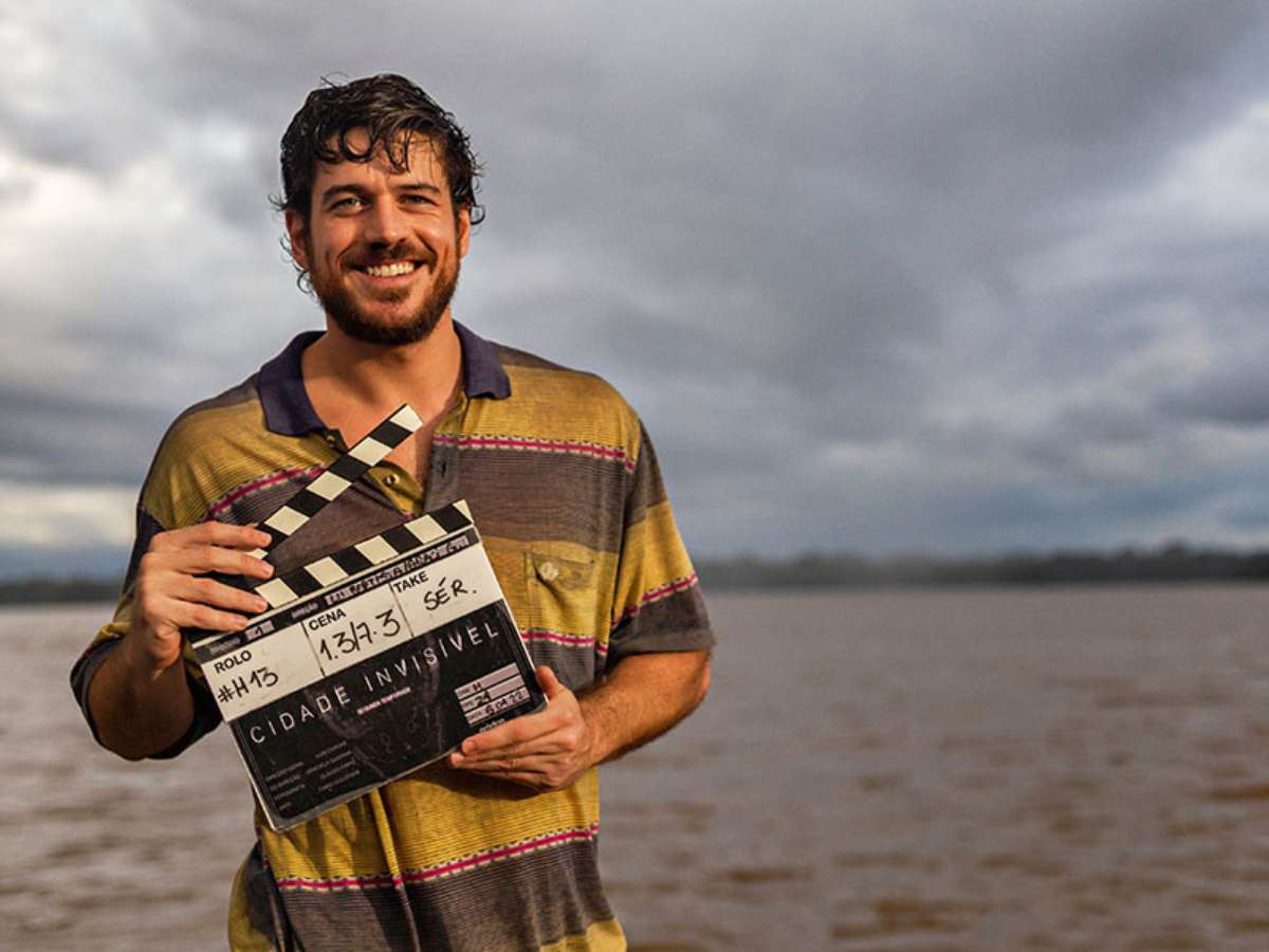 A Netflix divulgou a primeira imagem oficial dos bastidores da 2ª temporada de "Cidade Invisível", revelando o início das gravações. A foto traz o ator Marcos Pigossi com uma claquete à beira de um grande rio.