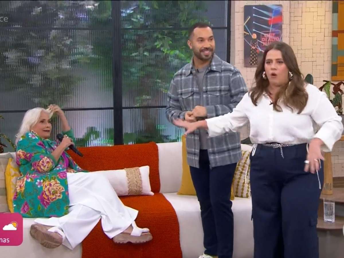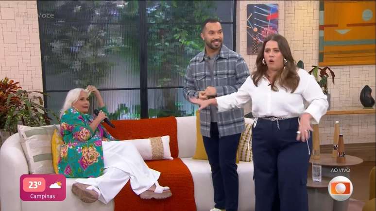 Tati Machado pede para Fafá de Belém sentar em sofá do Mais Você e leva resposta