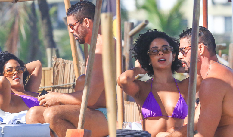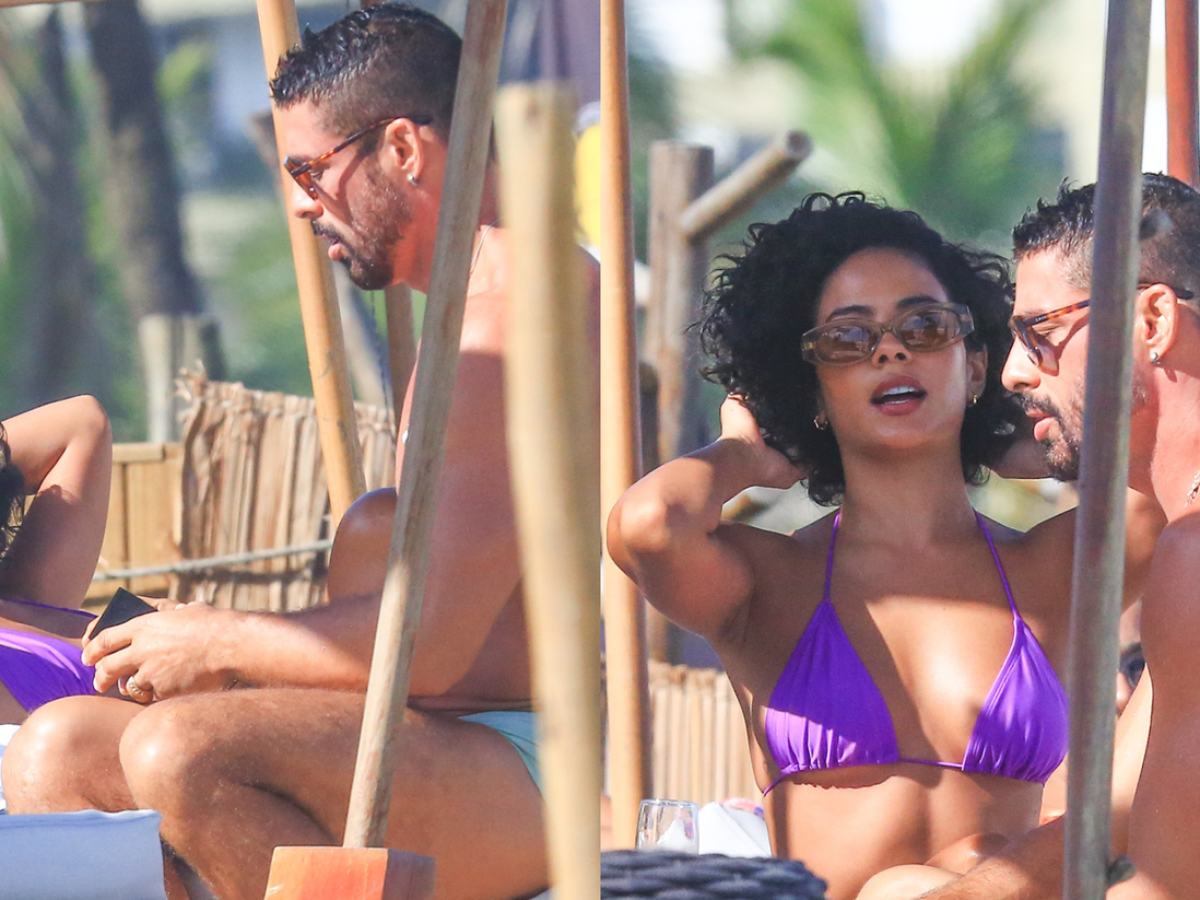 Bella Campos e Cauã Reymond gravaram cenas em uma praia na tarde desta quarta-feira (30).