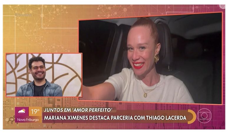 No programa de Patrícia Poeta, Mariana fez um vídeo para o parceiro: "Nós já temos uma história juntos que começou no Alto de Natal, na Paraíba, há muitos anos depois fizemos 'A Casa das Sete Mulheres', 'América' e agora esses dois malandros Gilda e Gaspar. Muitas travessuras, muitas coisas ardilosas nós fizemos não é verdade?", começou a vilã da novela das seis que verá Marê ter o seu final feliz.