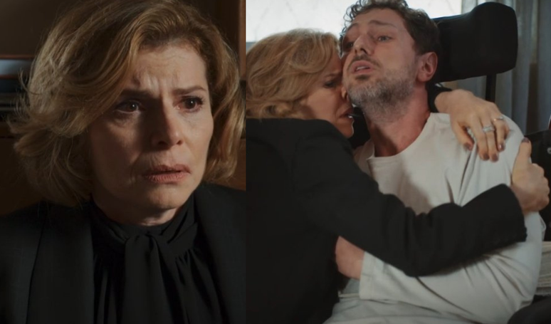 Em seguida, a cena ganhou contornos ainda mais densos. Odete abriu a geladeira, tomou um copo d'água e, em silêncio, deixou transparecer culpa e dúvidas em cada expressão. Por instantes, chegou a cogitar se deveria oferecer água ao filho, mas desistiu. Nervosa, tentou chamar a atenção dele e, para sua surpresa, Leonardo reagiu pela primeira vez, encarando-a nos olhos. O momento foi carregado de simbolismo quando ela falou sobre o peso de ser um Roitman e relembrou o acidente que o deixou naquela condição.