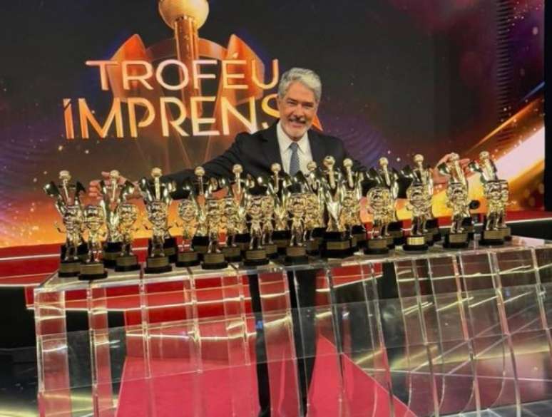 Veja o momento em que Bonner recebe as 33 estatuetas do Troféu Imprensa