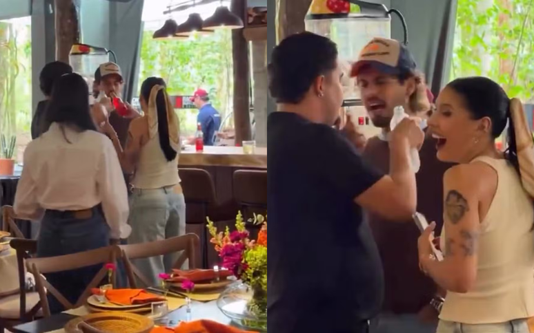 O momento foi interrompido por Michele Castela, mãe da cantora, que percebeu a situação. No vídeo, é possível ouvir a sogra dizer “Não, Ana” antes de retirar a garrafa da boca do genro. João Victor, amigo do cantor, também aparece oferecendo uma garrafa de água.
