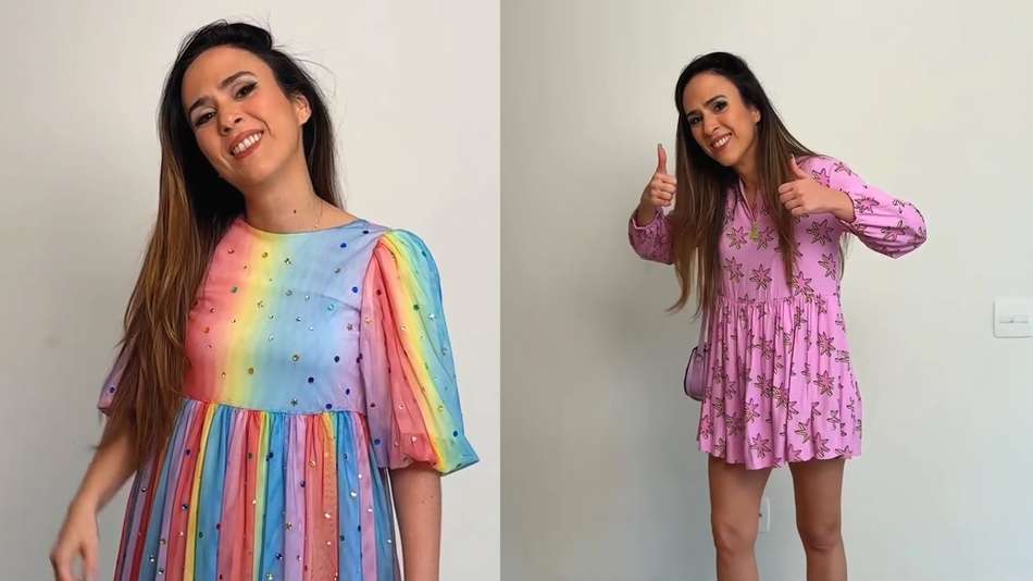 Tata Werneck se diverte usando vestidos da filha de 5 anos: 'Quem vai pegar as roupas de quem?'