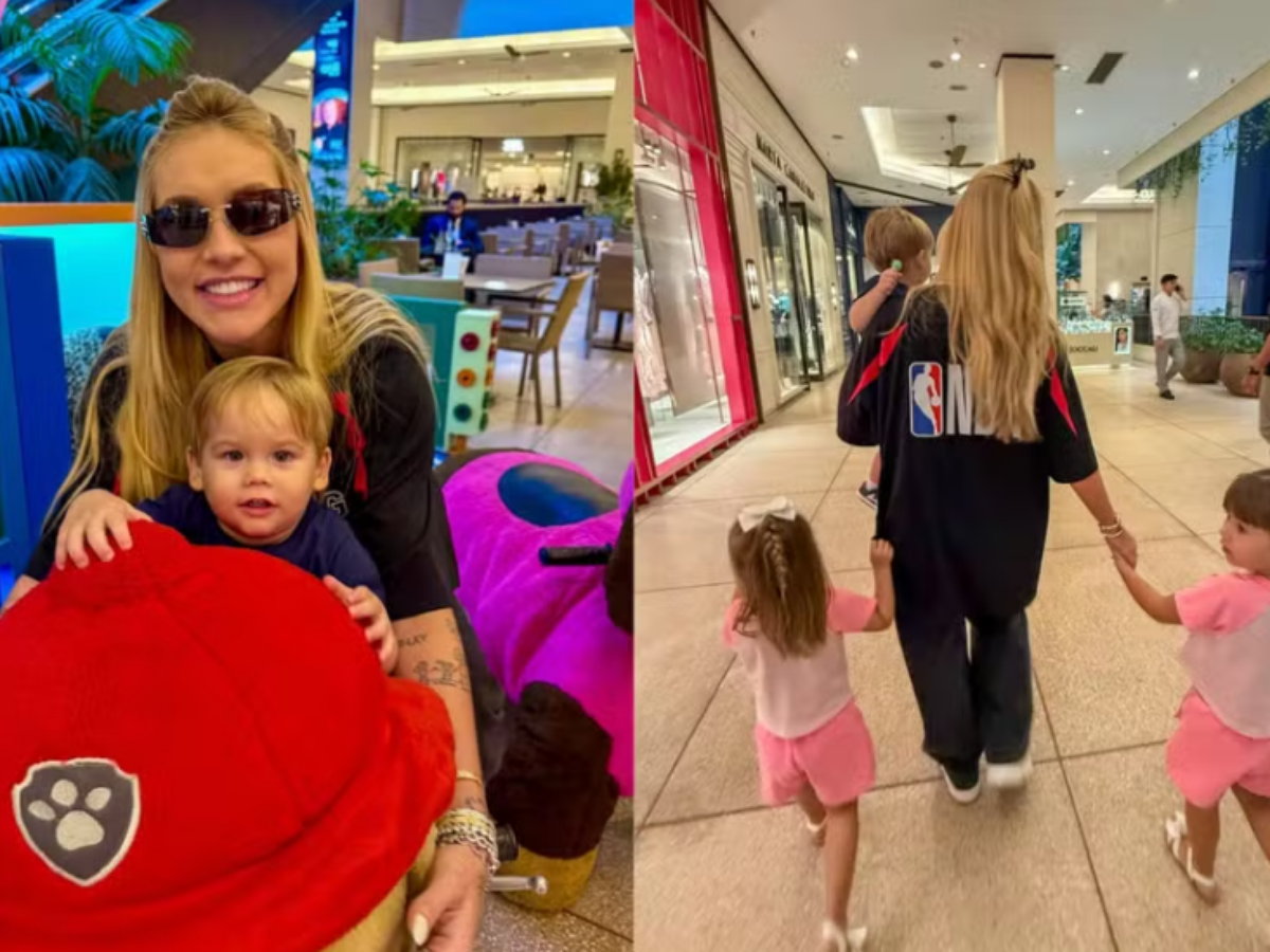Virginia Fonseca passou a tarde com os filhos em um shopping de São Paulo, revelando ter viajado no avião do ex-marido, Zé Felipe, que também a homenageou com flores em um show recente.