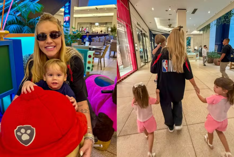 Virginia Fonseca, de 26 anos, aproveitou a segunda-feira, 23, ao lado dos filhos, Maria Alice, de 4, Maria Flor, de 3, e José Leonardo, de 1. A influenciadora compartilhou o momento em família, em um shopping de São Paulo, com os seus seguidores nas redes sociais.