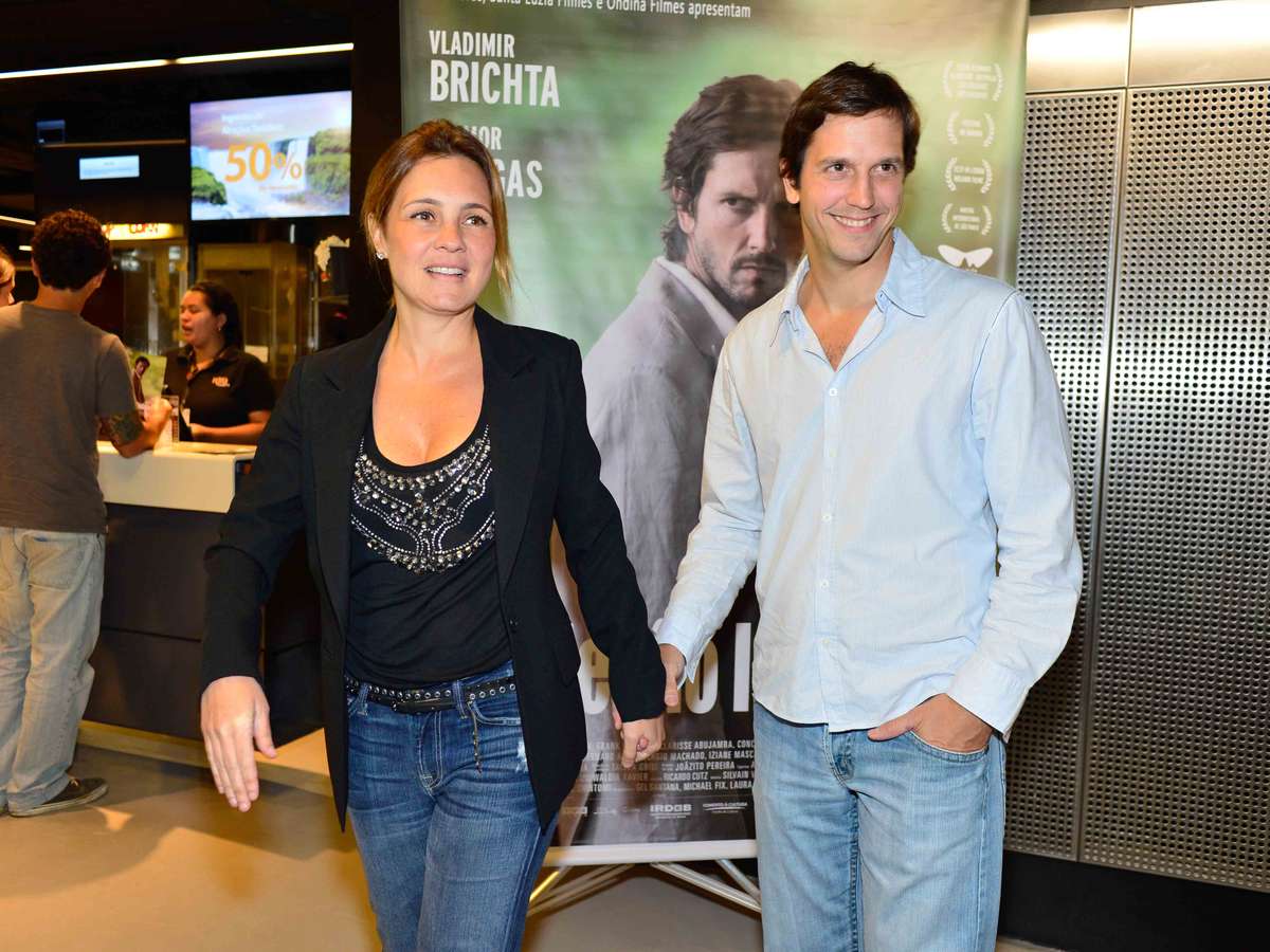 Vladimir Brichta divulgou nessa segunda-feira (2) o filme que estrela, 'A Coleção Invisível', no Rio de Janeiro. Adriana Esteves acompanhou o marido na pré-estreia, que também foi prestigiada por Wagner Moura