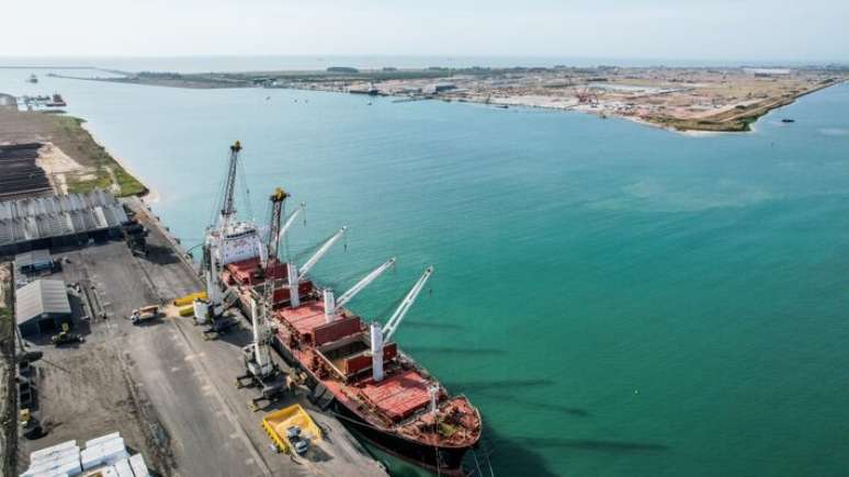 Aí temos uma vantagem enorme. Diferente de outros portos do Brasil, temos dois terminais totalmente independentes. Um deles é o terminal de águas profundas mais profundo do país, com calado de 25 metros. Só para você ter uma ideia, 35% das exportações de petróleo do Brasil, que é o item número um da pauta exportadora, passam por esse terminal operado por uma empresa do nosso grupo, a Vast. O terminal 2 tem sete quilômetros de canal dragado. Ali temos operações que vão desde exportação de grãos, importação de fertilizantes, apoio logístico para exploração de petróleo e até indústrias como a Technip, que produz tubos flexíveis. Como os acessos são independentes, temos o menor tempo médio de espera de navios do país. Isso é uma vantagem real.