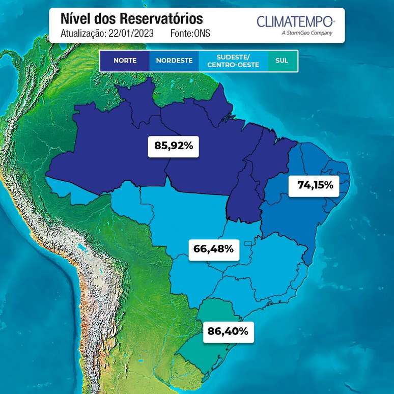 O subsistema Sudeste/ Centro-Oeste opera com 66,48% de sua capacidade até o último domingo (22). Com a continuidade das chuvas, a projeção de aumento da capacidade até o final do mês, esse janeiro de 2023 deve ter o melhor cenário nas hidrelétricas pelo menos dos últimos 10 anos.