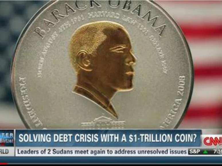 Segundo a CNN, enquanto Obama diz que não vai negociar um aumento do teto da dívida dos Estados Unidos, os republicanos brigam por isso. Debate sobre debate, a moeda seria uma opção para evitar o default; pagar a dívida e auxiliar na crise que o país vive.