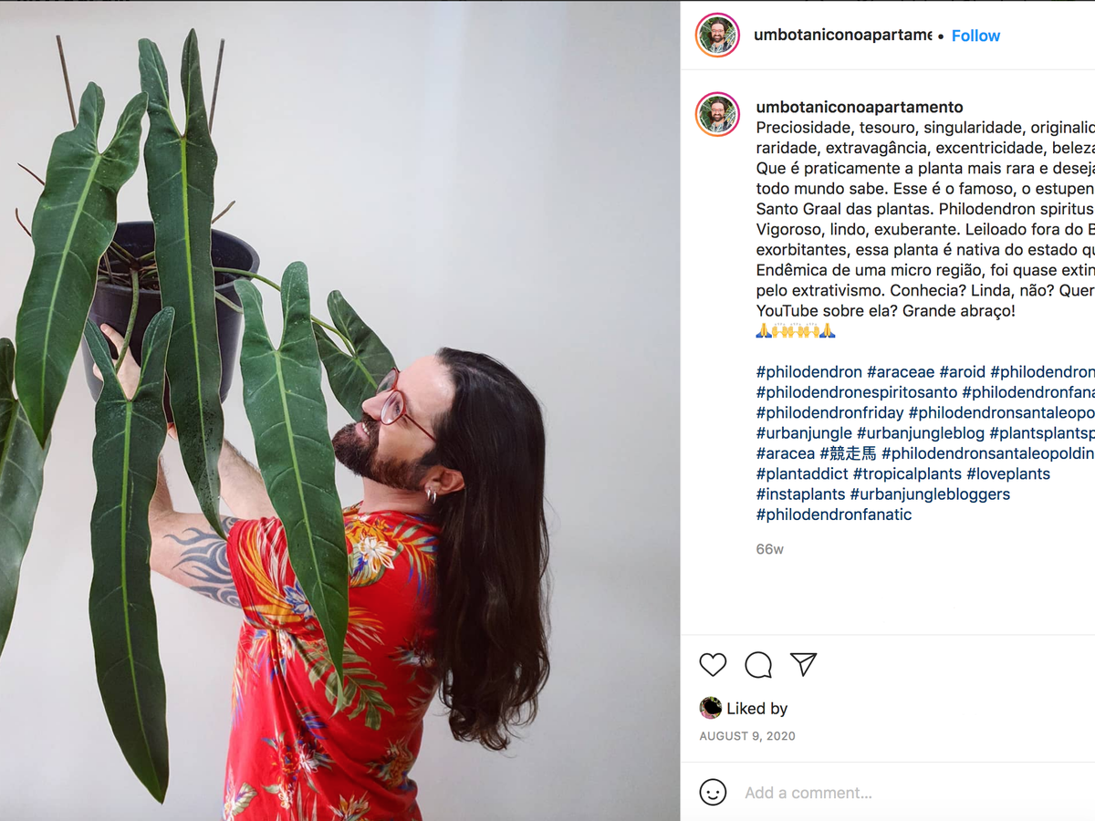 Este fator, aliás, talvez ajude a explicar por que a Philodendron spiritus sancti se tornou tão cobiçada. Num mundo em que postar uma costela-de-adão no Instagram virou um clichê, destaca-se mais quem for capaz de exibir plantas raras, conhecidas no meio como "unicórnios".