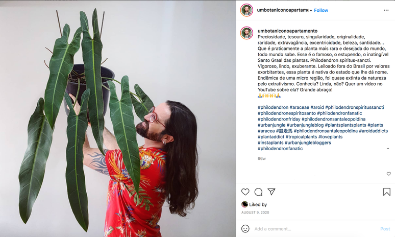 Isso porque muitos deles não estariam realmente interessados nas características das plantas, mas sim em ter espécies que os outros não tenham. "Hoje exibir uma planta rara nas redes sociais significa ganhar mais likes e seguidores, e isso tudo se traduz em mais dinheiro e mais patrocinadores. Virou um grande negócio", afirma.