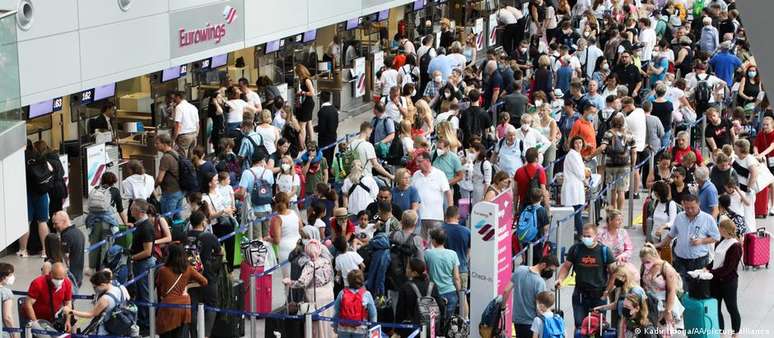Cancelamentos e longas filas de embarque marcam retomada do setor aéreo europeu após dois anos de pandemia. Falta de funcionários e fluxo intenso de passageiros no verão pressionam funcionamento dos aeroportos."Caos" é o adjetivo que melhor define a situação nos principais aeroportos europeus atualmente. Após dois anos sem viajar por causa da pandemia, os passageiros que pretendem aproveitar o verão na Europa estão tendo que suportar horas em filas ou até mesmo sofrendo com voos cancelados.