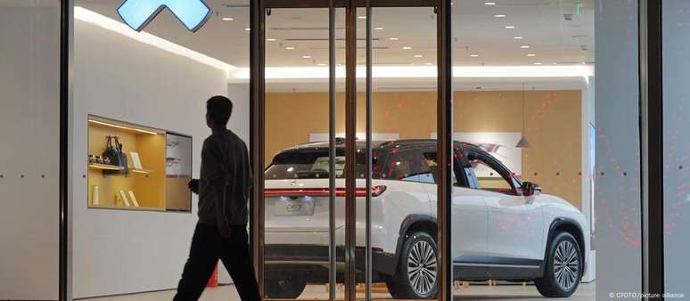 Nos elegantes showrooms dos fabricantes de automóveis chineses, a maioria dos vendedores parece entediada, enquanto olha para seus telefones celulares. O mais recente carro elétrico da montadora NIO está sozinho na loja. Sem nenhum cliente à vista, não parece que alguém queira fazer um test drive.