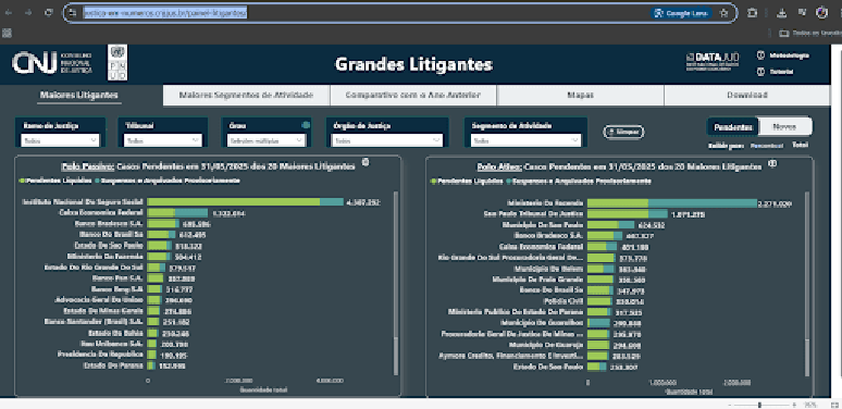 Em recente pesquisa divulgada no site do Conselho Nacional de Justiça, observa-se que quem lidera a lista de grandes litigantes no polo passivo é o INSS, contabilizando com 4.307.292 ações, vejamos: