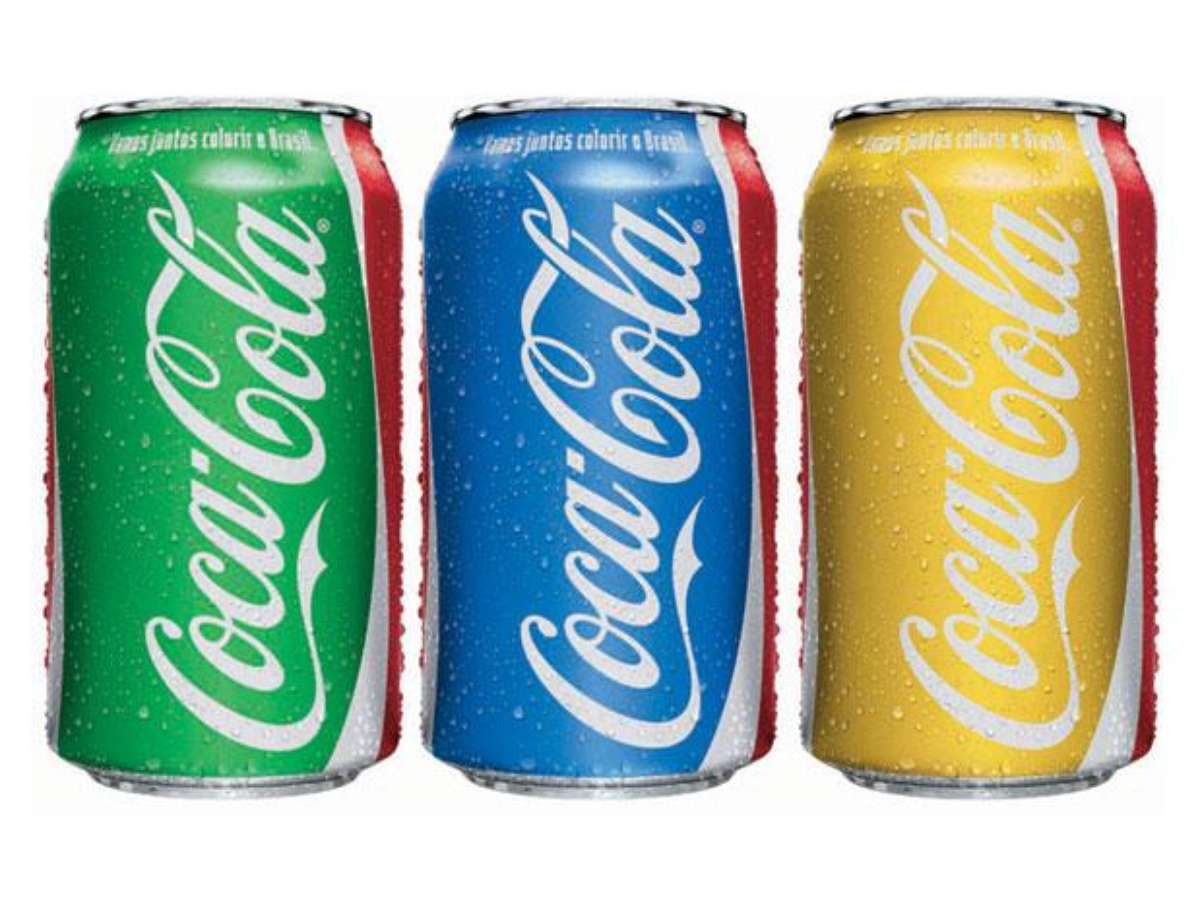 Pela primeira vez na história, a Coca-Cola mudou provisoriamente a cor das latas do refrigerante. De acordo com a empresa, a ação faz parte da campanha de marketing "Vamos juntos colorir o Brasil", que irá incentivar os brasileiros a colorir as ruas do País para os jogos da Copa das Confederações, que será disputada entre os dias 15 e 30 de junho por oito seleções. As latas têm as cores azul, amarelo e verde - referentes a bandeira do Brasil.