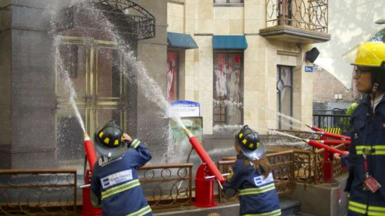 Os parques são inspirados na realidade e colocam os visitantes, as crianças, para trabalhar imitando os papéis desempenhados por adultos no mundo real.