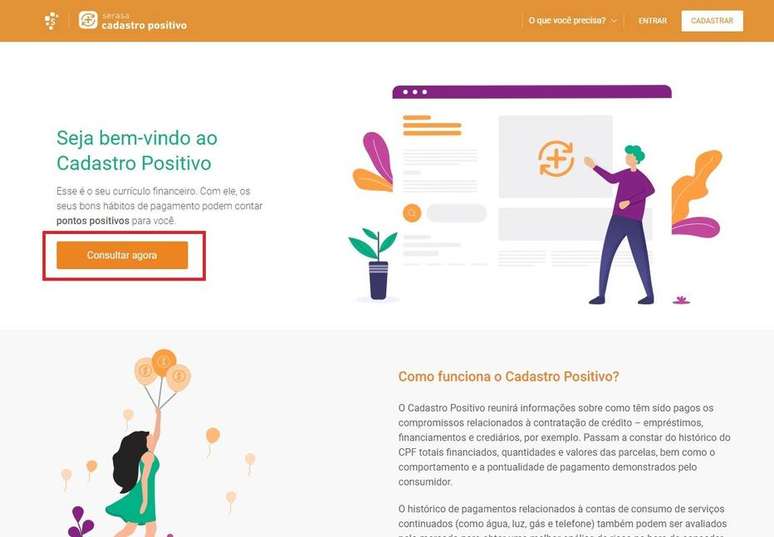- Acesse o site do Serasa (ou de qualquer um dos birôs de sua preferência) e vá na opção 'consultar agora'