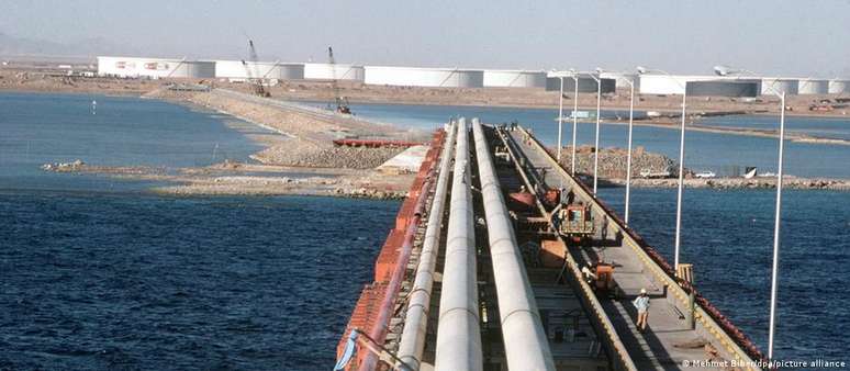"Antes da guerra, cerca de 15 milhões de barris por dia de petróleo bruto passavam pelo estreito. Seria preciso dobrar [a capacidade atual dos oleodutos] para escoar todo o volume de exportações", observa Mills.