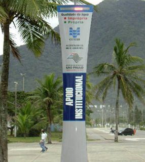 De acordo com Mauro de Souza Teixeira, assessor da Diretoria de Engenharia da Companhia de Tecnologia de Saneamento Ambiental, além da melhor visibilidade oferecida pelo totem, o banhista terá a informação sobre água em até 48 horas antes do que pelo modelo anterior. "Há algum tempo buscávamos uma alternativa. A empresa vencedora da seleção foi a Via Única, do Grupo Publitas. Nós queríamos algo facilmente identificável, com controle à distância, maior amplitude de visibilidade. Eles trabalharam nossas idéias e o resultado foi a opção por um totem."
