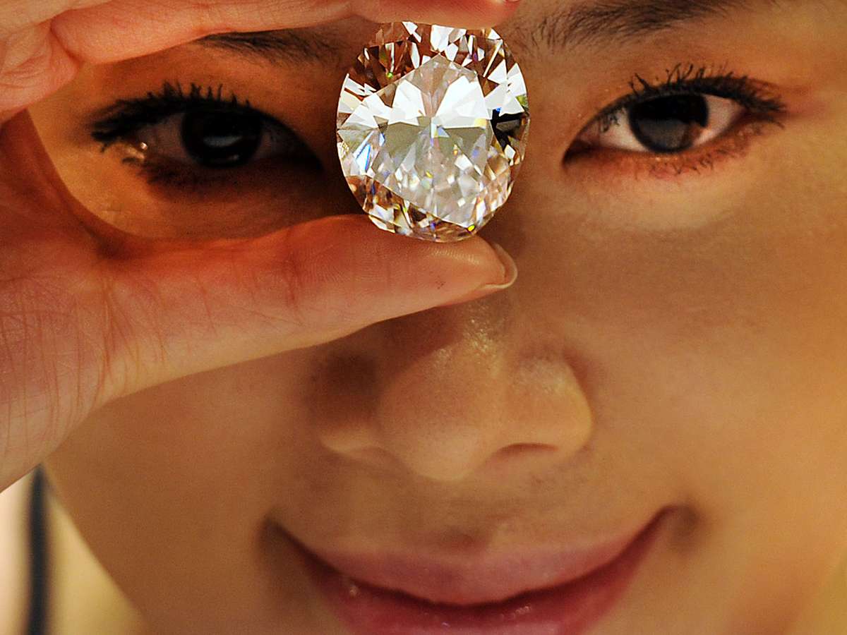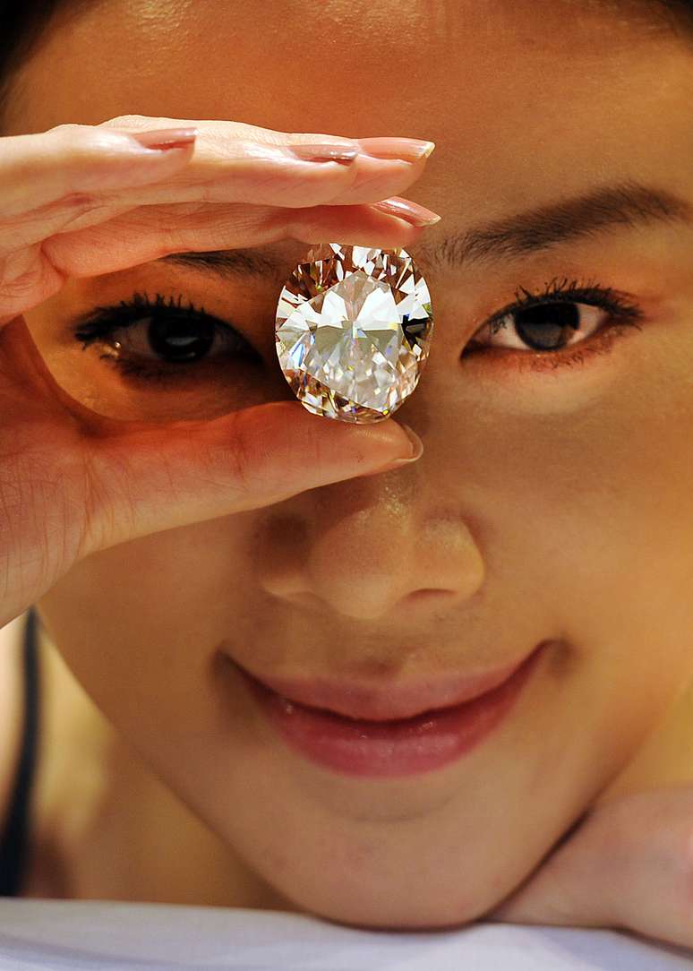 Diamante branco oval de 118,28 quilates foi mostrado nesta quinta na casa de leilões Sotheby, em Hong Kong. Peça deve alcançar entre US$ 28 mi (R$ 64,5 mi) a US$ 35 mi (R$ 80 milhões) no leilão que será realizado no dia 7 de outubro