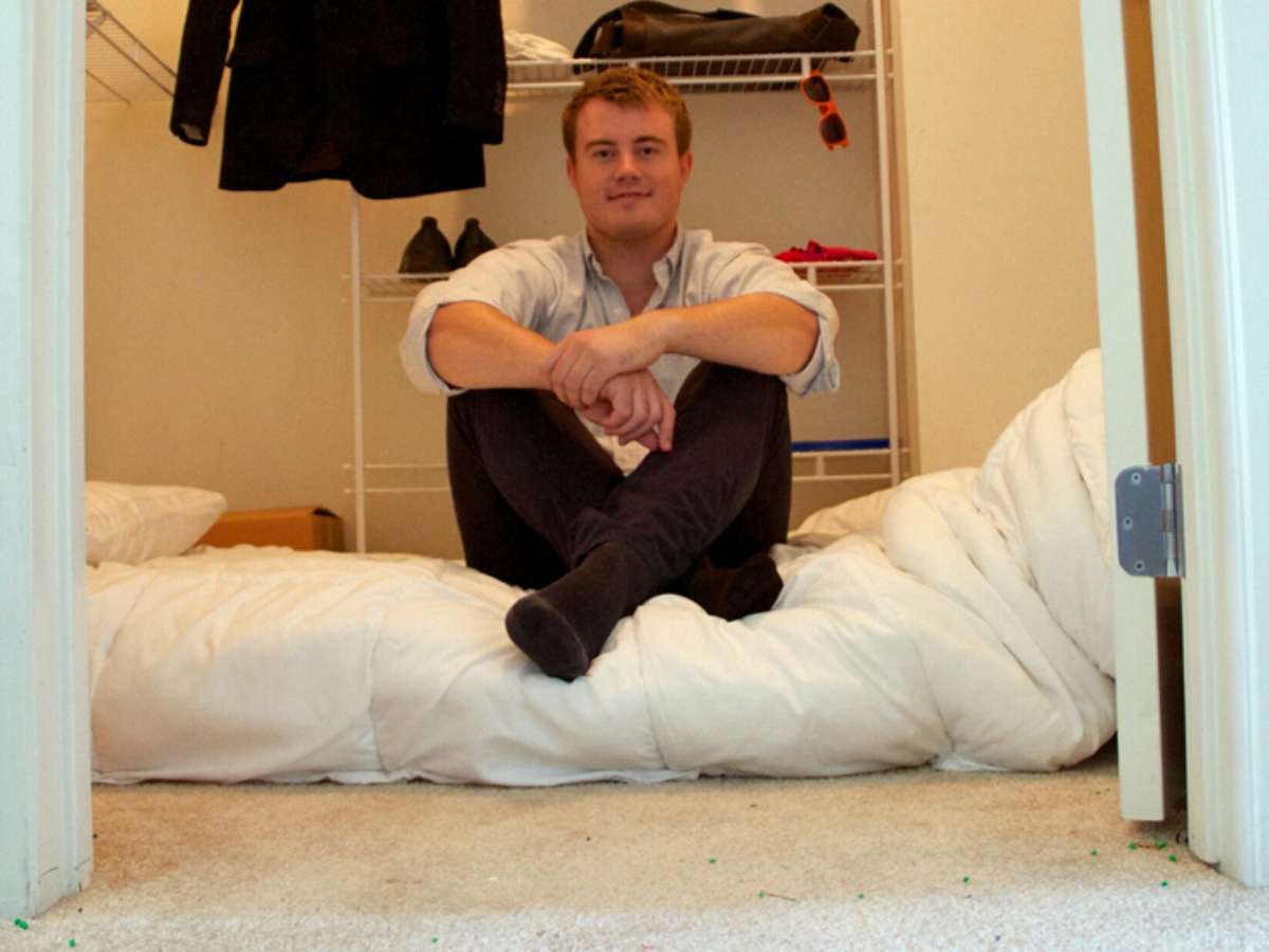 Em meados de 2014, ele finalmente conseguiu entrar em uma casa do tipo no Vale do Silício, mas tinha um problema: todas as 15 camas estavam ocupadas. Então, se ele quisesse, teria de dormir em um colchão inflável dentro de um closet sem janelas.