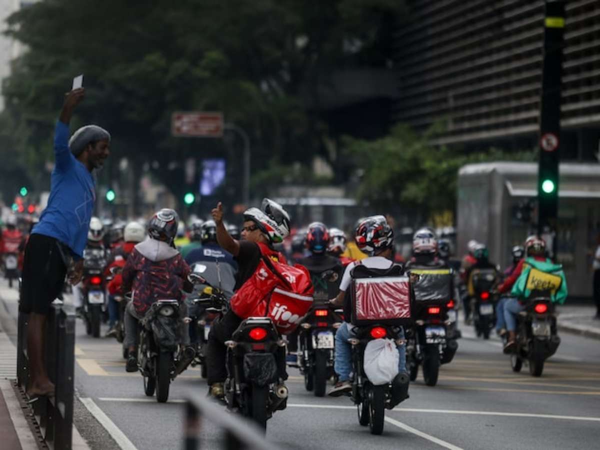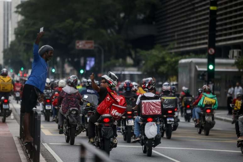 Entregadores e motoristas de aplicativo protestam em SP contra projeto que regulamenta o setor
