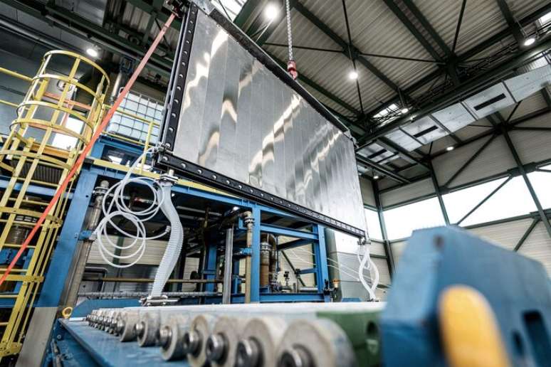 Hoje, nossa planta siderúrgica na Alemanha funciona com quatro altos-fornos, que usam carvão — uma fonte essencialmente baseada em carbono — no processo de transformação do ferro-gusa. O grande desafio é substituir esse modelo. Estamos investindo 3 bilhões de euros para converter o primeiro desses altos-fornos para uma tecnologia que utiliza hidrogênio verde. Nesse novo processo, o hidrogênio — produzido a partir de fontes renováveis — substitui o carvão, e a reação química, que antes gerava CO2, passa a gerar simplesmente vapor d'água. A meta é fazer essa transição completa até 2045, eliminando as emissões diretas da nossa siderurgia. Com isso, estamos fazendo o nosso papel. Estamos dando o exemplo, liderando a descarbonização na indústria e oferecendo as nossas tecnologias para o mercado industrial também poder descarbonizar.