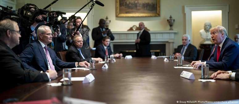 Durante uma reunião nesta sexta-feira na Casa Branca, Trump pressionou para que as empresas invistam 100 bilhões de dólares no país sul-americano para expandir drasticamente a produção local de petróleo.