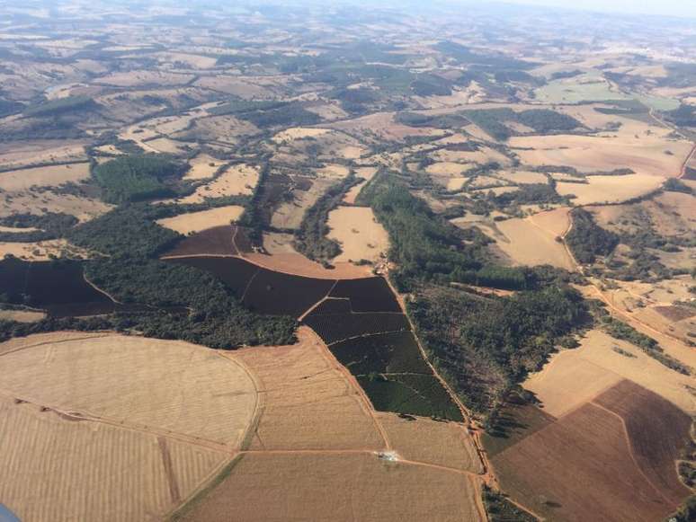 Em um sobrevoo pela região cafeeira de Varginha, no Sul de Minas Gerais, é possível ver manchas amarronzadas em grande parte das plantações, sinais de como as geadas do último dia 20 queimaram os cafezais e indicam perdas para as próximas duas safras, pelo menos.