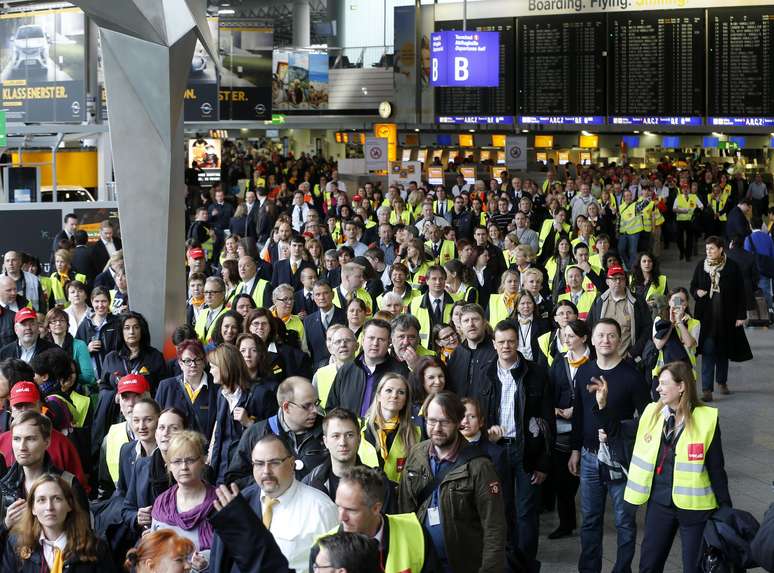 PUBLICIDADE Capa Economia Meu Negócio Loterias Forbes FDR Livecoins Contabilidade Online Vida de Empreendedor Calculadoras Vídeos Greve de funcionários da Lufthansa paralisa aeroportos na Alemanha Compartilhar Empregados em terra da companhia aérea caminham pelo terminal do aeroporto de Frankfurt Foto: AP Membros do sindicato Verdi fazem manifestação nesta segunda-feira no aeroporto de Stuttgart Foto: EFE Empregados em terra da companhia aérea caminham pelo terminal do aeroporto de Frankfurt Foto: AP Balcão da empresa no aeroporto de Munique ficou fechado nesta segunda-feira Foto: AP Compartilhar Publicidade Compartilhar TAGS Economia Publicidade