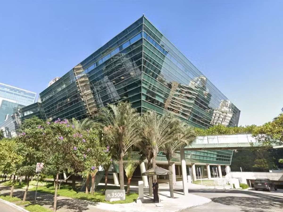 O prédio, que é todo espelhado e um dos mais conhecidos da Faria Lima, tem área de de 22.786 m².