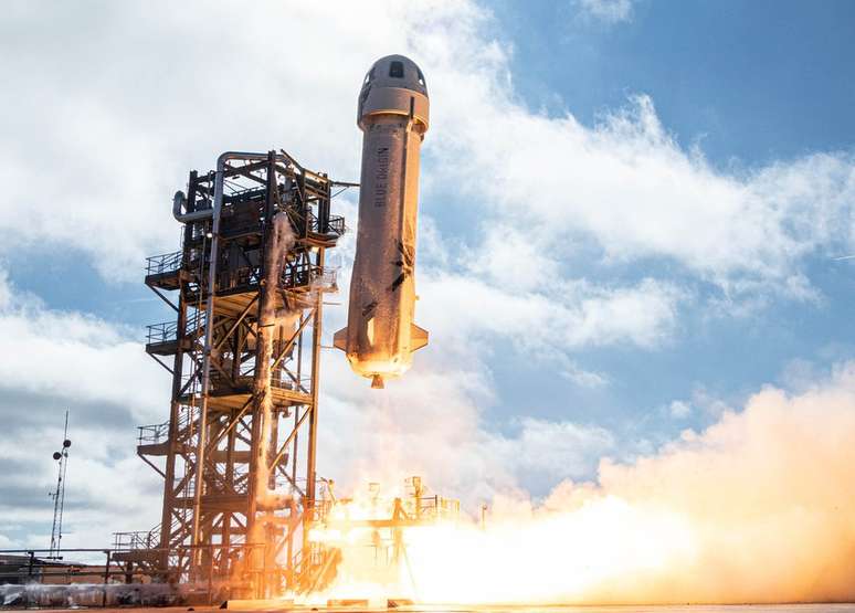 A empresa Blue Origin, do empresário americano detentor de uma fortuna estimada em R$ 1 trilhão, diz que lançará uma tripulação a bordo de seu sistema de foguete e cápsula New Shepard em 20 de julho de 2021.