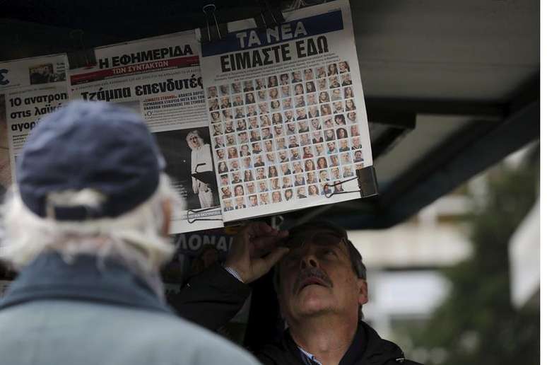 O número 21.700 de "Ta Nea" apareceu nesta quarta-feira com as fotos de seus jornalistas na capa sob a manchete "Estamos aqui".