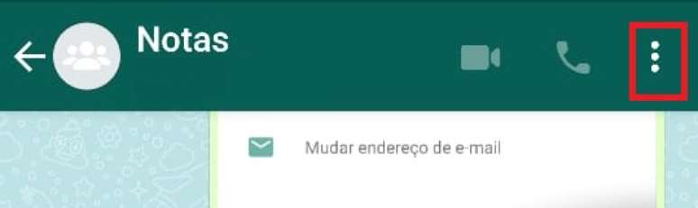 Para isso, abra a conversa ou o grupo e toque no menu de três pontos, que está no canto superior da tela.