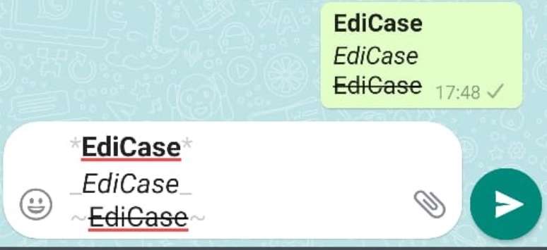 O WhatsApp permite formatar o texto das mensagens, isto é, colocá-los em negrito, itálico e riscado.