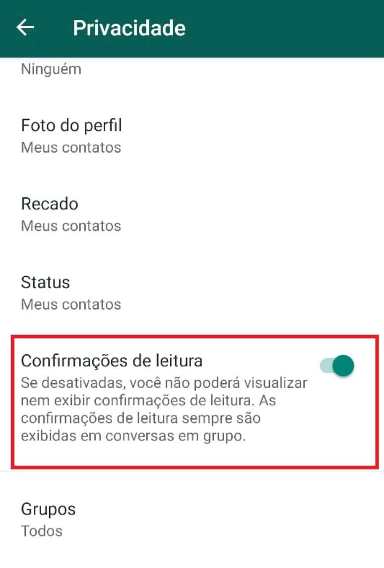 Em "Privacidade", desative a opção "Confirmações de leitura".