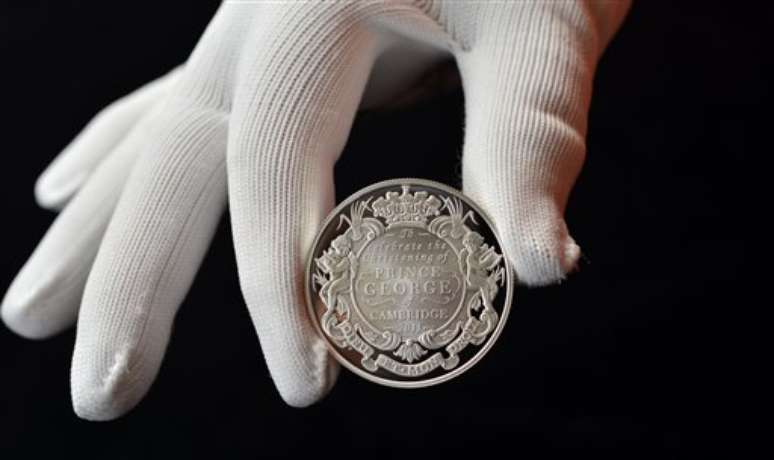 A British Royal Mint apresentou nesta terça-feira a moeda de prata de 5 libras (cerca de R$ 15) cunhada especialmente para homenagear o batismo do Príncipe George de Cambridge, o terceiro na linha de sucessão da coroa britânica.
