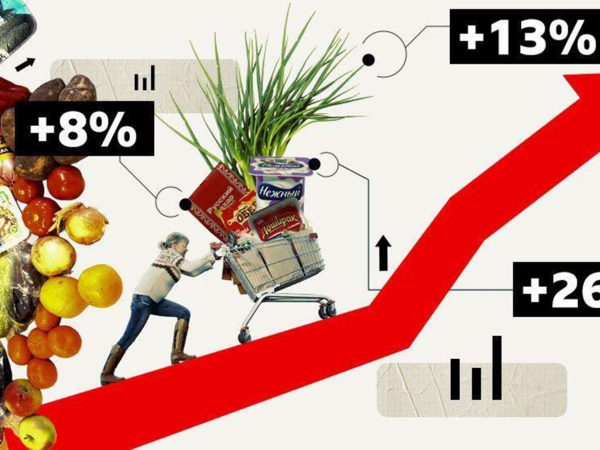 Em 2024, a cesta custou 7.358 rublos (R$ 502). No mês passado, custou 8.724 rublos (R$ 596) — um aumento de 18,6%.